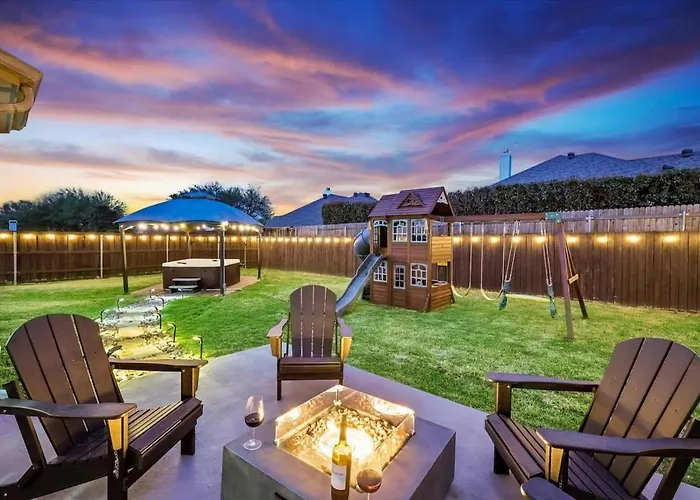 **Welcome to Luxury Home W Hot Tub Near DFW Airport**, an exceptional retreat conveniently located just 20 kilometers from the bustling Dallas-Fort Worth International Airport. This exquisite residence combines the spaciousness of a luxury home with the amenities of high-end accommodations, ensuring a tranquil escape from city life. Nestled in a serene neighborhood, it offers an idyllic setting for both leisure and business travelers seeking a restful stay in the heart of Texas.
